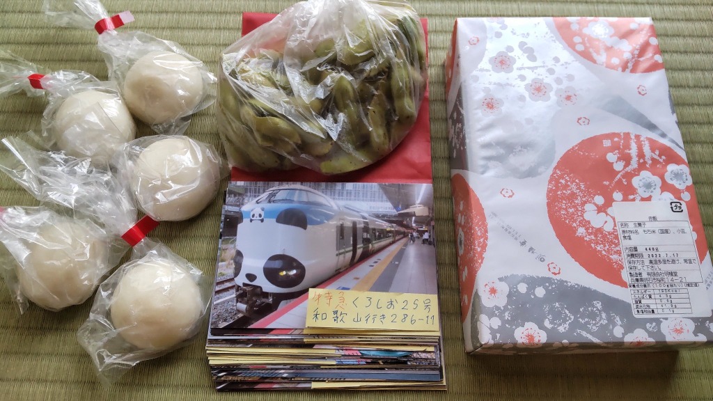 ひろろんのお母さんから枝豆、ひろろんから鉄道写真、餅まきでは餅5つ、参加者へのお赤飯と色々いただき全方位御利益しかないです🌼
