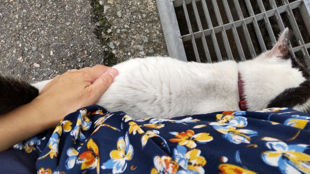 歩いている姿を見かけて追いかけたら路地の奥でペタンと座ったところだったけど「つぶっ❣️」と呼んだらおぁ〜🎵と返事しすぐに来てすりすりごろごろ❤