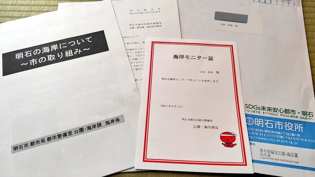 海岸モニター証が届きました✉️