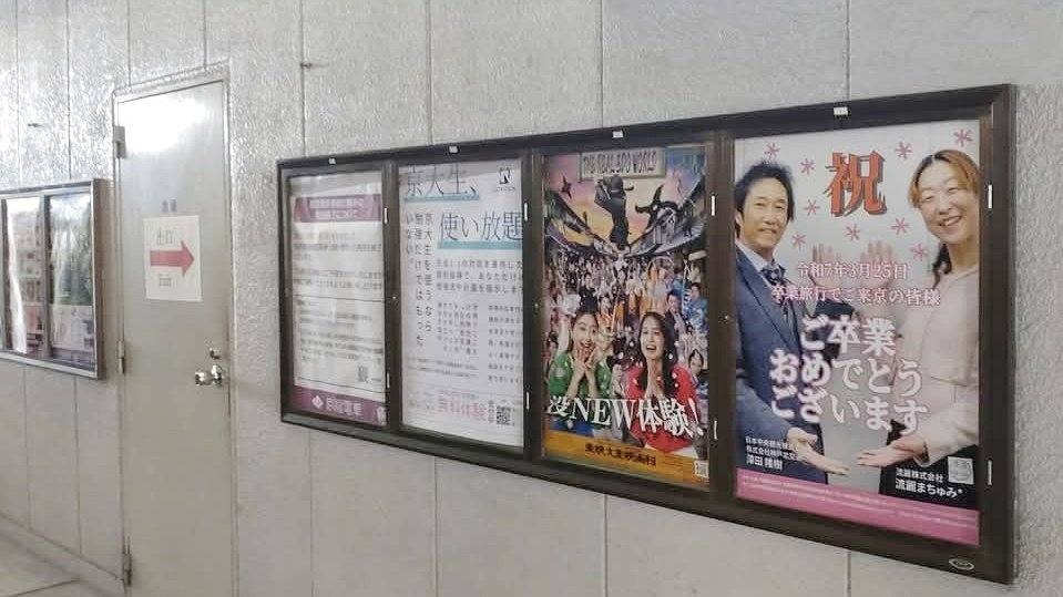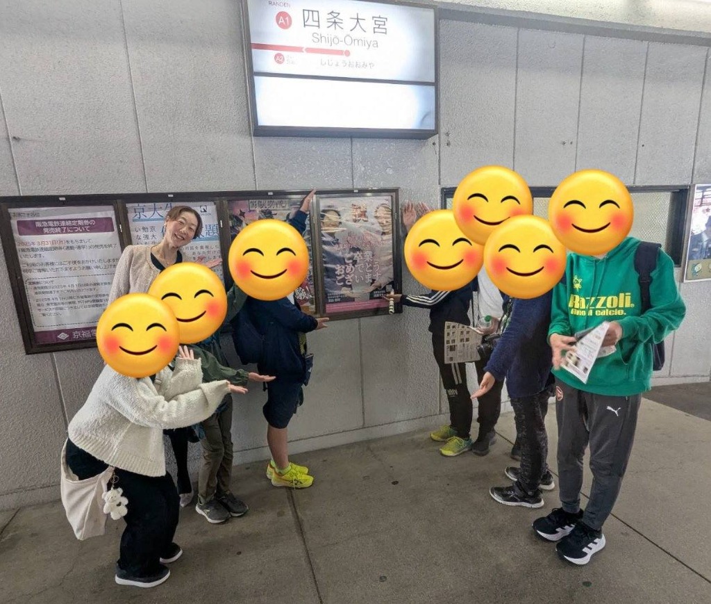 嵐電四条大宮駅にポスターを掲示して卒業生を迎えました😊